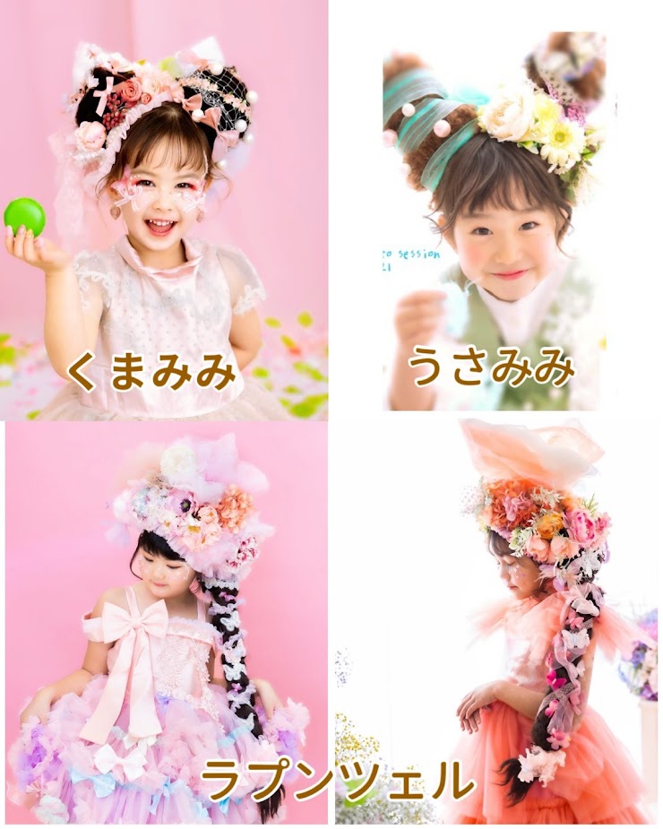 お好きなヘアメイクアレンジをくまみみorうさみみorラプンツェルどれかに変更できます。